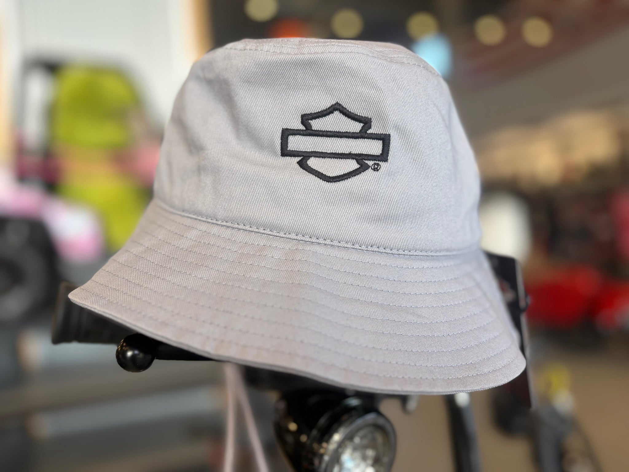 Check out a staff favorite! Our custom Savannah H-D bucket hat.  One size: SM/MD.  Also has an adjustable string.