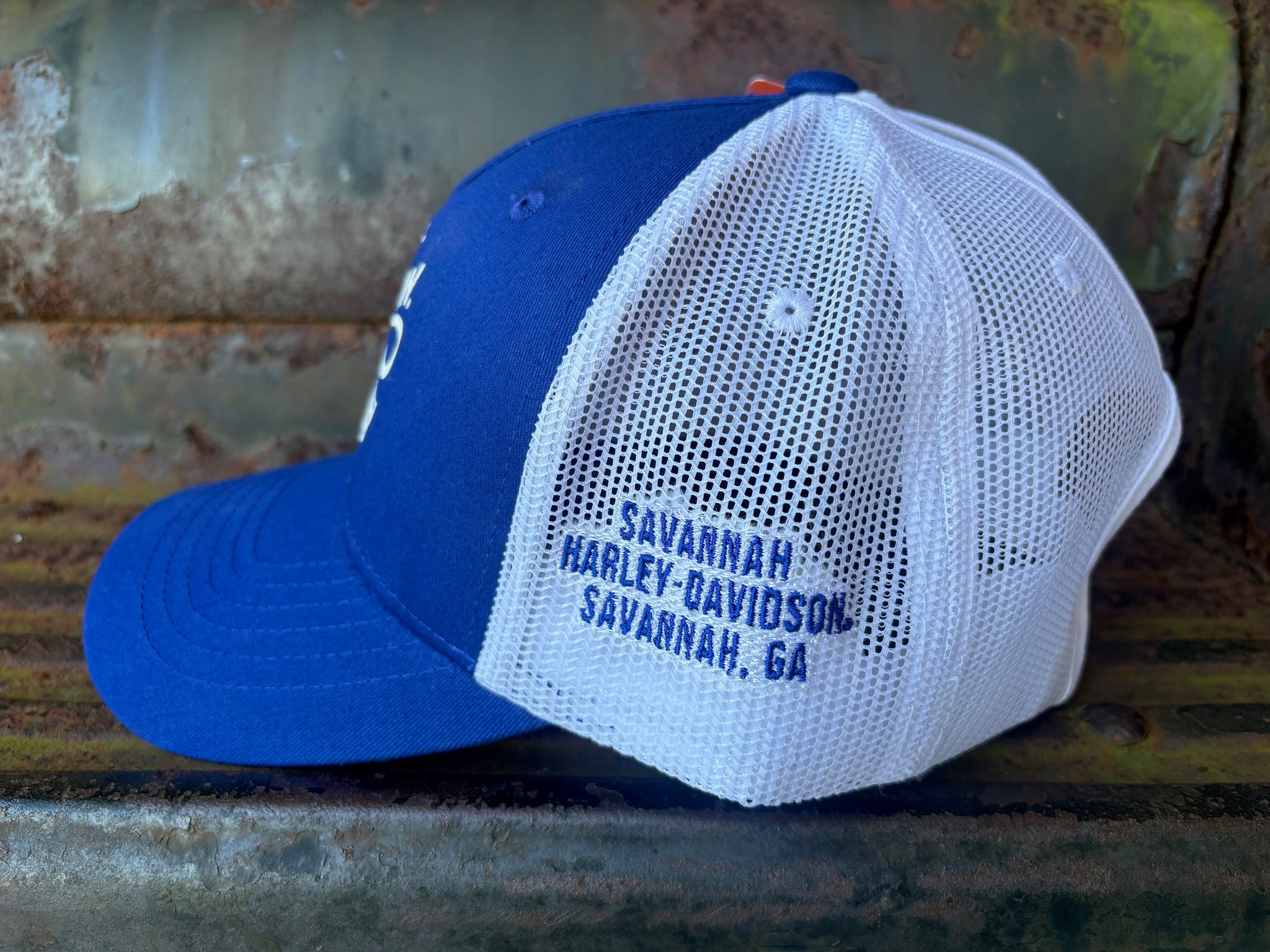 Our custom Savannah Harley-Davidson women's mesh SOAR cap. Adjustable and featuring a pony tail holder.
